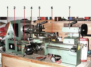 Keywords: Tornio con frecce.jpg de Universal-Drehmaschine<br> Legende - Antrieb der Hauptspindel - Längsschlitten-Handrad - Antrieb Querschlittenverstellung - Dreibacken-Spannfutter - Revolver-Werkzeughalter - Antrieb Werkzeugschlitten-Längsverstellung - Reitstock en Lathe it Tornio Legenda - Pulegge per cambio di velocità - Comando scorrimento orizzontale carrello - Comando scorrimento trasversale carrello - Mandrino autocentrante - Torretta portautensili - Comando scorrimento orizzontale della torretta portautensili - Sede della contropunta own Ricce 2008-08-03 upload Lathes Macchine utensili Tornio Diagrams labelled with numbers only |