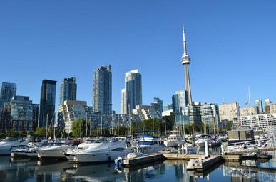 Keywords: toronto canada skyscrapers buildings skyline urban architecture bay harbor water boats ships summer spring outside reflections