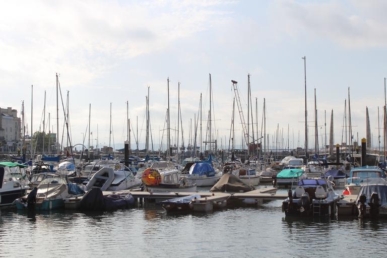 Keywords: torquay harbour strand england boats dock sea harbor sky water clouds