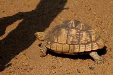 Keywords: tortoise animals mammals reptiles reptilian hard shells protective covering brown sandy soil grounds still life slow shadows fauna bright day nature wildlife