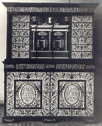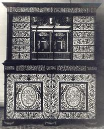 Keywords: Tortoiseshell cabinet Sobieski.JPG Italy Cabinet of John III Sobieski < 1683 Tortoise-shell ivory mother-of-pearl ebony cm 205 162 58 Owned by the Wilanów Palace lost 1939-1945 accession number object history credit line Presented to the king by Pope Innocent XI after victorious battle of Vienna It was looted during the World War II by Alfred Schellenberg from the Wilanów Palace in Warsaw Catalogue of stolen and missing cultural achievements / comp Jan Świeczyński; Ośrodek Informacyjno-Koordynacyjny Ochrony Obiektów Muzealnych Warsaw 1988 Editor Wojciech Jaskulski Piotr Ogrodzki See also http //kolekcje mkidn gov pl/katalog/podglad ID 12824 Department of National Heritage Wartime losses an official webpage of Polish Ministry of Culture Art and National Heritage PD-Art Photo Photo http //kolekcje mkidn gov pl/katalog/podglad ID 12824 Department of National Heritage Wartime losses an official webpage of Polish Ministry of Culture Art and National Heritage author < 1939 PD-Polish Anonymous-EU Furniture lost in Poland during World War II Missing items from the Wilanów Palace John III Sobieski Collection Cabinets Wooden furniture Incrustation Tortoiseshell Mother of pearl inlay Ebony |