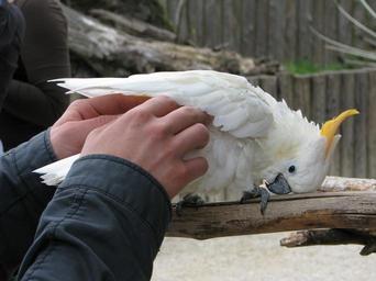 Keywords: parrot torture fun zoo hands petting bird outdoor A parrot being tortured to reveal all its secrets. A parrot being tortured to reveal all its secrets.