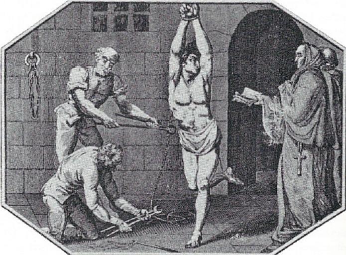 | Keywords: Torture Inquisition.jpg An etching showing Inquisitorial torture Source and date unknown 19th century Source http //www humnet ucla edu/santiago/whipping gif Caption reads Two old priests showing the application of torture under the supervision of the Inquisition Note that the image was apparently also mirrored PD-old original upload log wikitable date/time username resolution size edit summary ---- 11 04 12 March 2005 User Apollomelos 486×358 187 KB <nowiki> PD </nowiki> Torture in art Inquisition in art Spanish black legend |