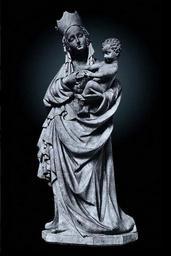 Keywords: Toruń Beautiful Madonna.JPG Madonna and Child Madonna z Dzieciątkiem Limestone 115 cm 45 28 in Catalogue of stolen and missing cultural achievements / comp Jan Świeczyński; Ośrodek Informacyjno-Koordynacyjny Ochrony Obiektów Muzealnych Warsaw 1988 Editor Wojciech Jaskulski Piotr Ogrodzki See also http //www mkidn gov pl/kolekcje/ Department of National Heritage Wartime losses an official webpage of Polish Ministry of Culture Art and National Heritage Owned by the Cathedral Basilica of St John the Baptist and St John the Evangelist in Toruń lost 1944 This type of figure with a specific expression is known as a Beautiful Madonna an example of the south-eastern variant of the International Gothic style in its most delicate form ca 1395 ; photo made before 1939 Master of Beautiful Madonnas; author of photo unknown PD-Polish Anonymous-EU Sculptures lost in Poland during World War II Interior of Cathedral of St John the Baptist and St John the Evangelist in Toruń Gothic statues of Madonna and Child in Poland 1390s statues of Madonna and Child Art in Kuyavian-Pomeranian Voivodeship Black and white photographs of sculptures |