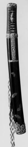 | Keywords: Toshitsugu - Dagger in Scabbard with Butterflies and Peonies - Walters 511237 - Group.jpg The tanto blade from the early 14th century is inscribed with the Sanskrit character presenting the Buddhist deity Fud My- It is mounted in a 19th-century scabbard decorated with butterflies on lacquer and metalwork depicting peonies Some of the metal fittings are signed Toshitsugu ca 1320 Kamakura dark brown lacquer silver gold steel L cm 43 accession number 51 1237 36531 Henry Walters Baltimore date and mode of acquisition unknown Walters Art Museum Henry Walters Acquired by Henry Walters Inscription On blade Fudo Myo-o; Signature On kozuka and kogai Toshitsugu; Signature On scabbard Akimasa The Nature of Loyalty Japanese Warrior Prints of the Nineteenth Century The Walters Art Gallery Baltimore 1989 place of origin Japan Walters Art Museum license Tosogu Japanese sword fittings in the Walters Art Museum Toshitsugu Media contributed by the Walters Art Museum needs category review Fudō Myōō |