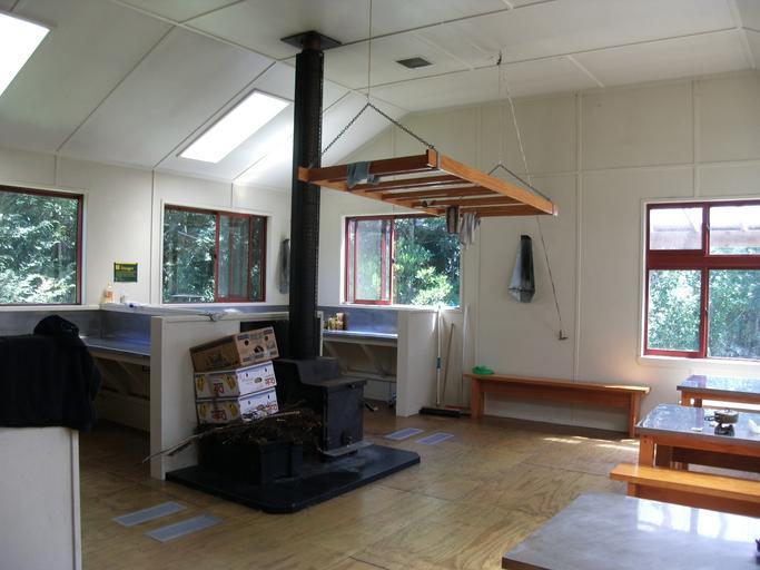 Keywords: Totara Flats 5.jpg Interior of the Totara Flats hut Tararua Range Tararua 2013-02-18 own Sarang Totara Flats Hut Hiking shelter stoves