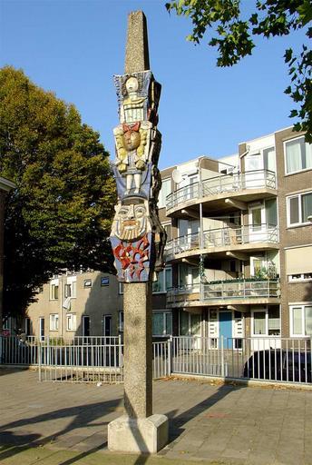 Keywords: Totempaal door Dick Elffers.jpg Totempaal door Dick Elffers - Snoystraat te Gouda Own 2008-09-26 Gouwenaar Sculptures in Gouda Dick Elffers Snoystraat Gouda