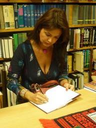 Keywords: Tóth Krisztina dedikál.JPG hu Tóth Krisztina költőnő dedikálja műveit saját munka Móricz Zsigmond Városi Könyvtár 2011 november 22 Cc-zero Krisztina Tóth