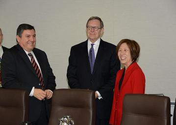 Keywords: Tour of the new DISA headquarters 121214-D-NN288-003.jpg en From left Alfred J Rivera the director of Computing Services and Larry K Huffman the principal director of operations both with the Defense Information Systems Agency give Teresa M Takai the Department of Defense chief information officer a briefing of DISA's functions at the new DISA Headquarters at Fort Meade Md Dec 14 2012 2012-12-14 DoD photo by Thomas L Burton/Released https //www dvidshub net/image/891460 121214-D-NN288-003 2013-03-21 03 55 FORT MEADE MD US 3 PD-USGov Fort Meade Images from DoD uploaded by Fæ |