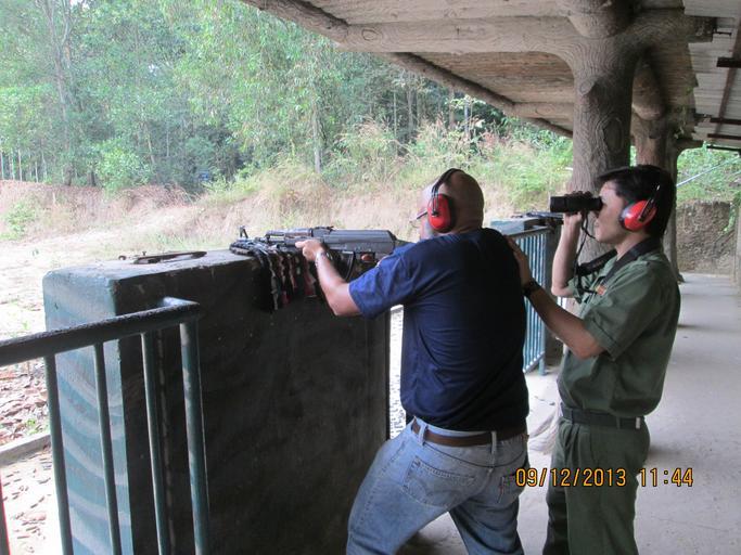 Keywords: Tourist Rudolph.A.Furtado at the 'Cu Chi Tunnels' firing range in Vietnam..JPG en Firing a AK-47 at the Tourist Firing Range in Cu Chi Tunnels complex own Rudolph A Furtado Monday 9-12-2013 People with AK-47 Cu Chi Tunnel Cc-zero