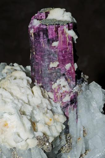 Keywords: Tourmaline, albite (Brésil) 2.jpg fr cristal de tourmaline var elbaite de couleur framboise à lie de vin avec albite trouvé en 1978 dans la géode d'Itatiaia au Brésil own Parent Géry 2010-09-09 Elbaite Tourmaline Albite Taken with Nikon D90 |