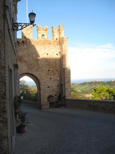 Keywords: town gate medieval town italy hill town gate hills sea view