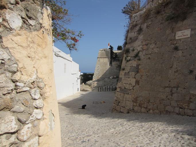 Keywords: town street cobblestone old structures stone ruins ibiza holidays