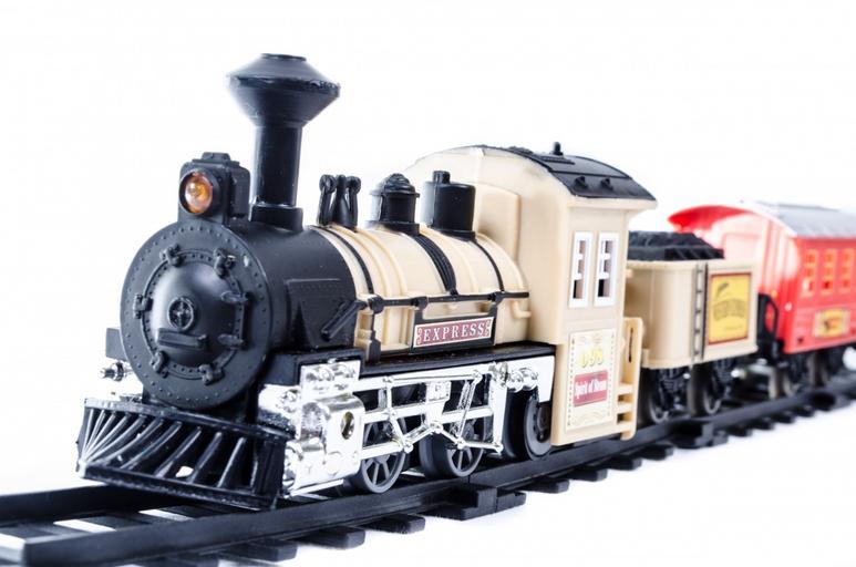 Keywords: toy train car isolated electric red horizontal miniature steam plastic small set track locomotive railroad