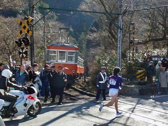 | Keywords: Tozan Kowakidani cross Ekiden Meidai.jpg en When the runner of Hakone-ekiden Relay Race passes Hakone Tozan Railway stops the train in this side of the railroad crossing 35 24009 139 05402 2010 Hakone Ekiden Hakone Tozan Type Moha 1 Kowakidani crossing Meiji University Athletic club |