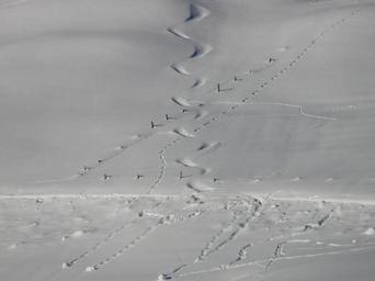 Keywords: traces snow snowy skiing wag track winter cold white fence deep snow