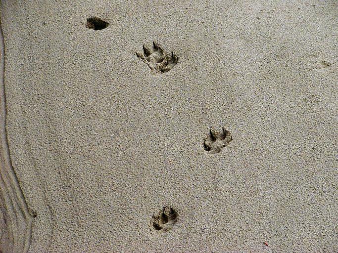 Keywords: tracks animal sand nature river bed foot paw footprint wildlife pattern print imprint set toe outline wild walk trail track outdoor veterinary trace