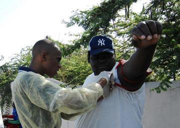 Keywords: Tradewinds 2014 plane crash exercise 140604-N-IA840-021.jpg en An instructor from the American University of Antigua applies moulage makeup to Kevon Warner a lifeguard with the Antigua and Barbuda Ministry of Tourism before a mass casualty training exercise here on June 4 Warner and several other lifeguards volunteered as role players simulating injured plane crash survivors during an Antigua and Barbuda Defence Force ABDF training exercise The exercise tested the response capabilities of local emergency services and ABDF members in search and rescue medical triage and treatment tactics and procedures as part of Tradewinds 2014 Tradewinds is a joint combined exercise conducted in conjunction with partner nations to enhance the collective abilities of defense forces and constabularies to counter transnational organized crime and to conduct humanitarian/disaster relief operations U S Navy photo by Chief Mass Communication Specialist Elizabeth Thompson 2014-06-04 Chief Petty Officer Elizabeth Thompson https //www dvidshub net/image/1380991 140604-N-IA840-021 2014-06-05 15 33 ST JOHN'S AG PD-USGov-Military-Navy Tradewinds 2014 Images from DoD uploaded by Fæ |