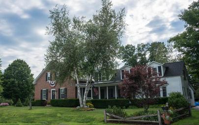 Keywords: traditional home house brick building architecture residential estate exterior wood property old classic landscape sky clouds nature outdoor summer