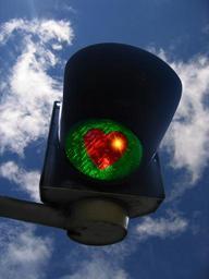 Keywords: traffic lights green heart love luck relationship thank you greeting card postcard background sky valentine's day romance romantic loyalty tender tenderness affection clouds valentine