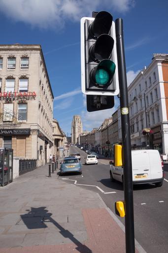 Keywords: traffic lights green university tower autos historically structures bristol england