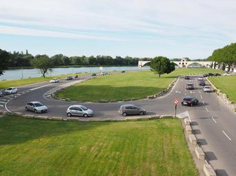 Keywords: traffic road avignon autos jam curve return pont saint bénézet pont d'avignon rhône ruin arch bridge historic preservation bridge of avignon sur le pont d'avignon provence river places of interest tourist attraction water waters building architecture bending over ruins invaded collapsed destroyed