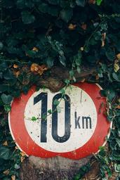 Keywords: traffic sign speed limit street sign information boards road shield traffic speed warnschild road sign characters security nature note mileage overgrown tree plant