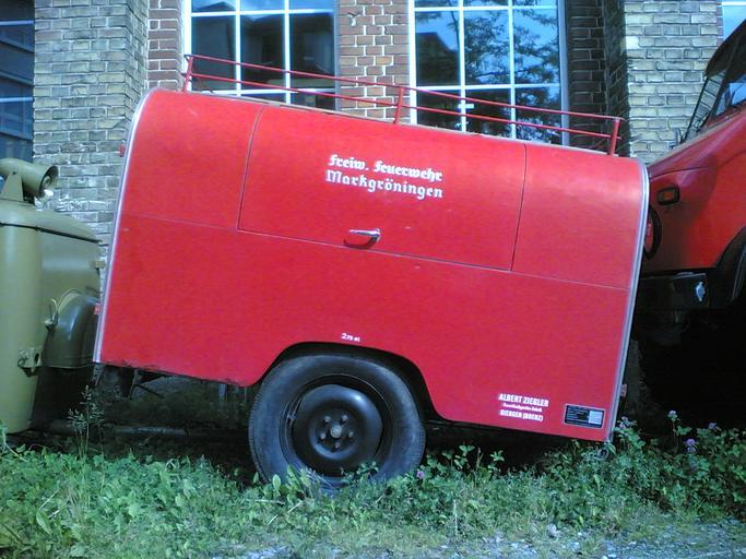 Keywords: Tragkraftspritzenanhaenger.jpg Portable Fire Pump Trailer own 2006 Karlo Public domain all rights released Markgröningen Historical fire engines of Germany