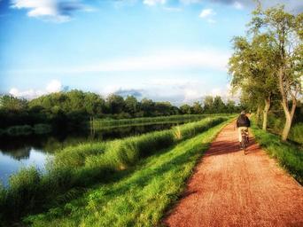 Keywords: trail path lane park sky clouds nature outside river stream water summer spring hdr