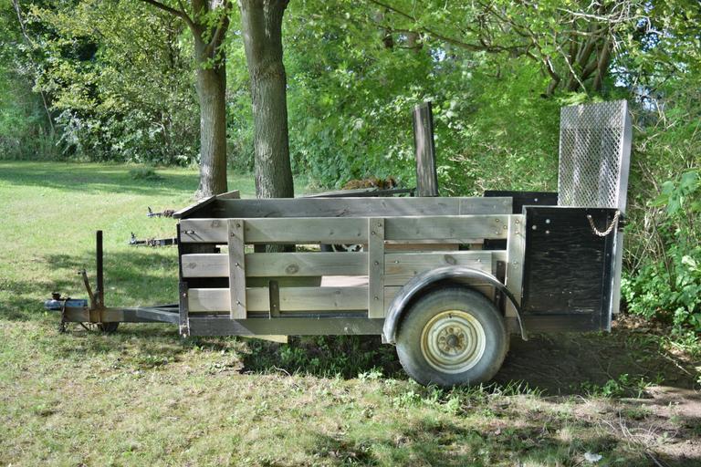 Keywords: trailer green rough wooden country old transportation vehicle equipment wheel