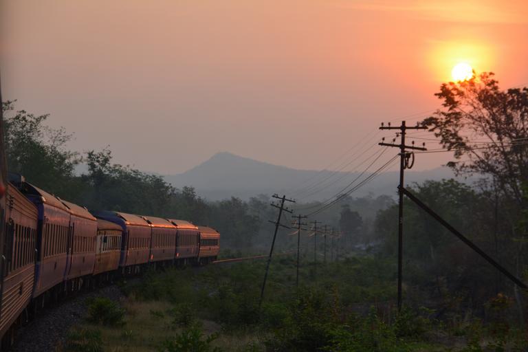 | Keywords: train carriages railway transport transportation travel rail railroad train tracks locomotive track railroad tracks journey speed wagon motion movement perspective trip moving outdoor travelling sunrise countryside summer nature vehicle vacation sunlight |
