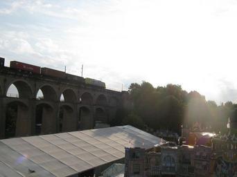 Keywords: Train on Bietigheim Viaduct seen from Ferris wheel2.JPG en Train on Bietigheim viaduct photographed from Ferris wheel own Zonk43 2010-09-03 Pferdemarkt Bietigheim 2010