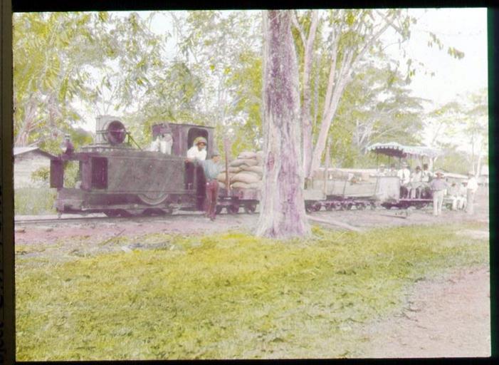 | Keywords: panama canal panamacanal seth meek sethmeek samuel hildebrand samuelhildebrand fish zoology expedition zoologyexpedition central america centralamerica 1911 1912 panama canal construction outdoor Train or tramway, small cars on track with engineer or driver, burlap bags on one car, passengers in car with fabric covered top. Cana Railroad? Darien Gold Mining Company (?). 1912. Name of Expedition: Panama Canal Zone Participants: Seth E. Meek, Samuel F. Hildebrand Expedition Start Date: 1911 Expedition End Date: 1912 Purpose or Aims: Zoology (Fishes) Location: Central America, Panama, Darien, Boca de Cupe Original material: Hand-colored Lantern Slide Digital Identifier: Z94349_44c Learn more about The Field Museum's Library Photo Archives. Train or tramway, small cars on track with engineer or driver, burlap bags on one car, passengers in car with fabric covered top. Cana Railroad? Darien Gold Mining Company (?). 1912. Name of Expedition: Panama Canal Zone Participants: Seth E. Meek, Samuel F. Hildebrand Expedition Start Date: 1911 Expedition End Date: 1912 Purpose or Aims: Zoology (Fishes) Location: Central America, Panama, Darien, Boca de Cupe Original material: Hand-colored Lantern Slide Digital Identifier: Z94349_44c Learn more about The Field Museum's Library Photo Archives. |