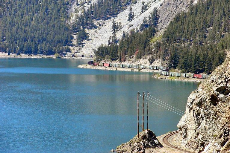 Keywords: train railway lake landscape mountain rocks