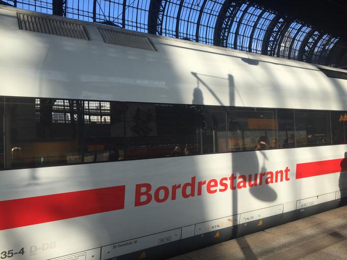 Keywords: train railway station hamburg central station wagon bord restaurant restaurant dining car ice platform deutsche bahn