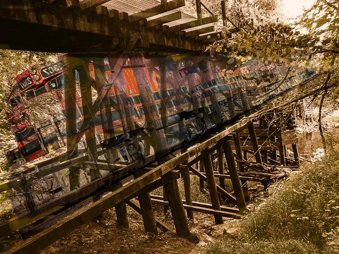 Keywords: train trestle double exposure