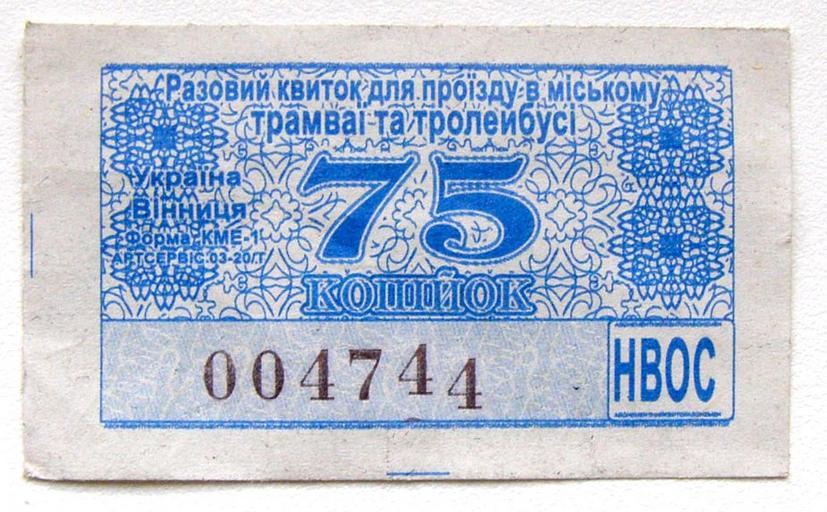 Keywords: Tram ticket.jpg en Vinnitsa's tram ticket ru Разовий квиток на п оїзд в т амваї та т олейбусі Own 2008-03-03 Alex Khimich Trams in Vinnytsya Trolleybuses in Vinnytsya City transport tickets of Ukraine