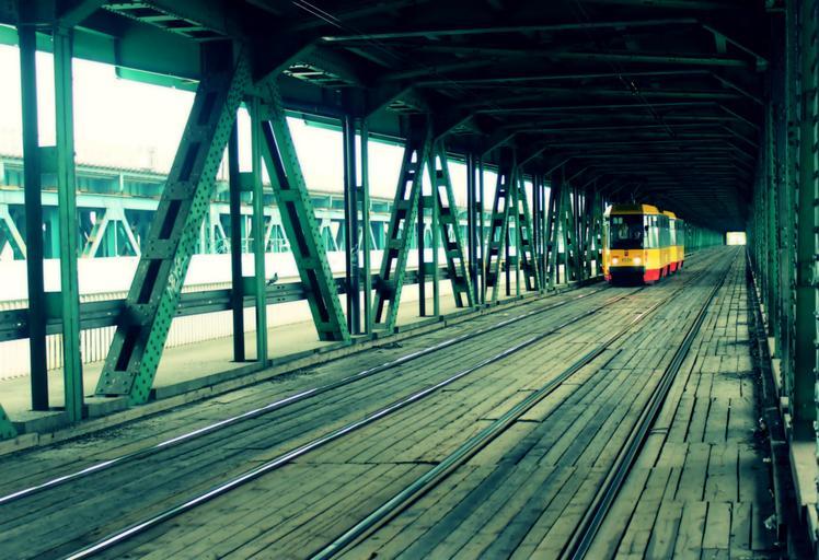 Keywords: tram train bridge railway warsaw poland city architecture europe travel cityscape tourism polish town tourist street