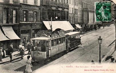 Keywords: Tramway de Nancy rue-St-Jean 1912.jpg en électric tram in Nancy France vintage postcard published by Maison des magasins in 1912 fr Tramway électrique rue Saint Jean à Limoges collection personnelle - Carte postale ancienne éditée par Maison des magasins réunis my own collection scaned by ABACA from vintage postcard published by Maison des magasins réunis - Nancy 1912 PD-old-70-1923 cc-by-sa-3 0 GFDL History of tram transport in France Black and white photographs of trams Trams in Nancy |