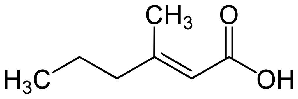 Keywords: Trans-3-methyl-2-hexenoic acid.svg en Trans-3-methyl-2-hexenoic acid TMHA own Yikrazuul 2010-10-22 Trans fatty acids
