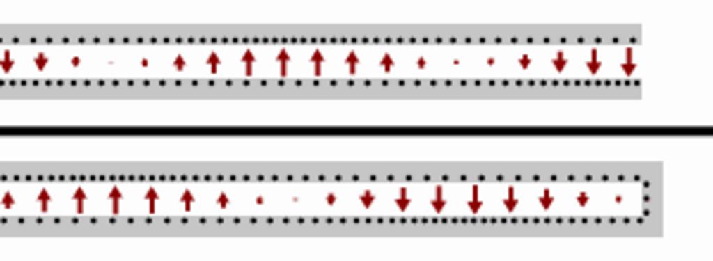 | Keywords: Transmission line animation open short2.gif en Two transmission lines the top one terminated at an open-circuit the bottom terminated at a short circuit Black dots represent electrons and the arrows show the electric field 2014-11-11 own Sbyrnes321 other versions cc-zero Source code <source lang python> C Steven Byrnes 2014-2016 This code is released under the MIT license http //opensource org/licenses/MIT This code runs in Python 2 7 or 3 3 It requires imagemagick to be installed; that's how it assembles images into animated GIFs Use Python 3 style division a/b is real division a//b is integer division from __future__ import division import subprocess os directory_now os path dirname os path realpath __file__ import pygame as pg from numpy import pi linspace cos sin frames_in_anim 50 animation_loop_seconds 2 5 time in seconds for animation to loop one cycle bgcolor 255 255 255 background is white ecolor 0 0 0 electrons are black wire_color 200 200 200 wire color is light gray split_line_color 0 0 0 line down the middle is black arrow_color 140 0 0 arrows are red pygame draws pixel-art not smoothed Therefore I am drawing it bigger then smoothly shrinking it down img_height 330 img_width 900 final_height 110 final_width 300 ~23 megapixel limit for wikipedia animated gifs assert final_height final_width frames_in_anim < 22e6 transmission line wire length and thickness and y-coordinate of the top of each wire tl_length int img_width 9 tl_thickness 27 tl_open_top_y 30 tl_open_bot_y tl_open_top_y + 69 tl_short_top_y 204 tl_short_bot_y tl_short_top_y + 69 tl_open_center_y int tl_open_top_y + tl_open_bot_y + tl_thickness / 2 tl_short_center_y int tl_short_top_y + tl_short_bot_y + tl_thickness / 2 wavelength 1 1 tl_length e_radius 4 dimensions of triangular arrow head this is for the longest arrows; it's scaled down when the arrow is too small arrowhead_base 9 arrowhead_height 15 width of the arrow line arrow_width 6 number of electrons spread out over the transmission line top plus bottom num_electrons 100 max_e_displacement is defined here as a multiple of the total electron path length roughly twice the width of the image because we're adding top + bottom max_e_displacement 1/40 num_arrows 20 max_arrow_halflength 18 def tup_round tup round each element of a tuple to nearest integer return tuple int round x for x in tup def draw_arrow surf x tail_y head_y draw a vertical arrow Coordinates do not need to be integers calculate dimensions of the triangle; it's scaled down for short arrows if abs head_y - tail_y > 1 5 arrowhead_height h arrowhead_height b arrowhead_base else h abs head_y - tail_y / 1 5 b arrowhead_base h / arrowhead_height if tail_y < head_y downward arrow triangle tup_round x head_y tup_round x - b head_y - h tup_round x + b head_y - h triangle_middle_y head_y - h/2 else upward arrow triangle tup_round x head_y tup_round x - b head_y + h tup_round x + b head_y + h triangle_middle_y head_y + h/2 pg draw line surf arrow_color tup_round x tail_y tup_round x triangle_middle_y arrow_width pg draw polygon surf arrow_color triangle 0 def e_path_open param time param is an abstract coordinate that goes from 0 to 1 as the electron position goes right across the top wire then left across the bottom wire time goes from 0 to 2pi over the course of the animation This returns a dictionary 'pos' is x y the coordinates of the corresponding point on the electron dot path; 'displacement' is the displacement of an electron at this point relative to its equilibrium position between -1 and -1 ; and 'charge' is the net charge at this point between -1 and +1 This is for the open-circuit line d is a vertical offset between the electrons and the wires d e_radius + 2 pad is how far to extend the transmission line beyond the image borders since those electrons may enter the image a bit pad 36 path_length 2 tl_length + pad howfar param path_length go right along top transmission line if howfar < tl_length + pad x howfar - pad y tl_open_top_y + tl_thickness - d displacement -sin 2 pi tl_length - x / wavelength cos time charge cos 2 pi tl_length - x / wavelength cos time return 'pos' x y 'displacement' displacement 'charge' charge go left along bottom transmission line x path_length - howfar - pad y tl_open_bot_y + d displacement -sin 2 pi tl_length - x / wavelength cos time charge -cos 2 pi tl_length - x / wavelength cos time return 'pos' x y 'displacement' displacement 'charge' charge def e_path_short param time Same as e_path_open above but for the short-circuit line d is a vertical offset between the electrons and the wires d e_radius + 2 pad is how far to extend the transmission line beyond the image borders since those electrons may enter the image a bit pad 36 path_length 2 tl_length + pad + 4 d + tl_short_bot_y - tl_short_top_y - tl_thickness howfar param path_length at the beginning go right along top wire if howfar < tl_length + pad x howfar - pad y tl_short_top_y + tl_thickness - d displacement cos 2 pi tl_length - x / wavelength cos time charge sin 2 pi tl_length - x / wavelength cos time return 'pos' x y 'displacement' displacement 'charge' charge at the end go left along bottom wire if path_length - howfar < tl_length + pad x path_length - howfar - pad y tl_short_bot_y + d displacement cos 2 pi tl_length - x / wavelength cos time charge -sin 2 pi tl_length - x / wavelength cos time return 'pos' x y 'displacement' displacement 'charge' charge in the middle charge 0 displacement cos time top part of short if tl_length + pad < howfar < tl_length + pad + d x howfar - pad y tl_short_top_y + tl_thickness - d bottom part of short elif tl_length + pad < path_length - howfar < tl_length + pad + d x path_length - howfar - pad y tl_short_bot_y + d vertical part of short else x tl_length + d y tl_short_top_y + tl_thickness - d + howfar-pad - tl_length + d return 'pos' x y 'displacement' displacement 'charge' charge def e_path param time which return e_path_open param time if which 'open' else e_