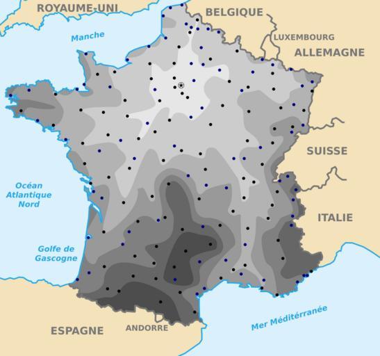 | Keywords: Travel times in train from Paris map.svg  Map showing best travel times from Paris to many cities of France using the SNCF's network For methodology and legend see below Carte montrant les meilleurs temps de parcours possibles de Paris à de nombreuses villes de France en utilisant le réseau SNCF Pour la méthodologie et la légende voir plus bas Own work created from Image Départements de France svg Based on requests to the SNCF's website 2008-02 Bayo for the country limits coasts and préfectureslocations ; Benjism89 for the rest File Travel times in train from Paris map - 2015 svg more recent and complete version Image Travel times in train from Paris map en svg in English Legend / Légende Each color covers all parts of France which transportation time from Paris through SNCF's network is between x hours and x+1 hours For instance the lightest grey color is for parts of France less than one hour from Paris through the SNCF's network ; the darkest one for parts of France more than 6 hours from Paris The cities shown by a dot on this map are those which best travel time from Paris has been precisely checked Prefectures are shown with a black dot other important cities with a blue one Chaque couleur correspond à toutes les régions du territoire français dont le temps de parcours depuis Paris par le réseau SNCF est compris entre x heures et x+1 heures Par exemple le gris le plus clair correspond aux régions situées à moins d'une heure de Paris ; le gris le plus foncé à celles situées à plus de 6 heures de Paris Les villes représentées par un point sur cette carte sont celles dont le meilleur temps de parcours depuis Paris a été précisément vérifié Les préfectures sont indiquées en noir les autres villes importantes en bleu Każdy odcień odpowiada obszarom Francji dla których czas przejazdu pociągu z Paryża mieści się z przedziale x x+1 godzin Na przykład najjaśnieszy odcień odpowiada regionom do których podróż z Paryża trwa poniżej godziny najciemniejszy oznacza regiony do których pociąg z Paryża podróżuje powyżej 6 godzin Dla miast zaznaczonych na mapie czas najlepszy czas przejazdu został dokładnie sprawdzony Na czarno zaznaczono stolice departamentów prefektury na niebiesko pozostałe ważne miasta Methodology / Méthodologie English Based on approximately 160 requests to the SNCF's website http //www voyages-sncf com for travel from Paris to main French cities on Wednesday March 5 2008 Each time the best travel time on that day including travel times using SNCF's buses has been shown on this map The requests have been made in late January / early February 2008 All prefectures have been shown on this map except Ajaccio and Bastia in Corsica so they cannot be reached from Paris using SNCF's network Privas no open train station Bobigny Créteil and Nanterre too close to Paris This map also shows approximately 70 other important cities chosen because of their size or because they are the only important city in a large part of France Other travel times those that are not for cities marked with a dot have not been checked on SNCF's website and are very approximate Français Données acquises par la vérification des temps de parcours entre Paris et principales villes de province Environ 160 requêtes ont été envoyées au site de la SNCF http //www voyages-sncf com fin janvier/début février afin de connaitre les connexions disponibles pour le vendredi 5 mars 2008 Les meilleurs temps de parcours y compris les connexions par bus SNCF sont montrées sur la carte Toutes les chef-lieux des départements préfectures sont présents sur la carte sauf Ajaccio et Bastia la Corse n'est pas accessible par train depuis Paris ainsi que Privas non desservie par train Bobigny Créteil et Nanterre trop proches de Paris De plus environ 70 autres villes sont présentes soit à cause de leur taille soit de leur importance à l'échelle régionale Les autres temps de parcours pour les villes qui sont absentes de la carte n'étaient pas vérifies et sont très approximatifs Polski Mapa jest oparta na danych uzyskanych ze strony SNCF http //www voyages-sncf com dotyczących czasu przejazdu pociągiem z Paryża do wybranych miast we Francji Pod koniec stycznia/na początku lutego 2008 wysłano ok 160 zapytań o połączenia kolejowe z uwzględnieniem połączeń autobusowych uruchamianych przez SNCF w środę 5 marca 2008 Wszystkie stolice departamentów prefektury są zaznaczone na mapie za wyjątkiem Ajaccio i Bastii Korsyka nie posiada połączeń kolejowych z Paryżem a także Privas brak stacji kolejowej Bobigny Créteil and Nanterre położone zbyt blisko Paryża Około 70 innych miast jest zaznaczonych na mapie zostały one wybrane ze względu na ich wielkość lub duże znaczenie w skali regionalnej Pozostałe czasy przejazdu dla miast nie zaznaczonych na mapie nie były sprawdzane i są bardzo przybliżone Licensing / Licences For Bayo's work Bayo For my work Cc-by-sa-3 0 2 5 2 0 1 0 GFDL User Benjism89/Credits Rail transport maps of France Travel times Travel time maps France |