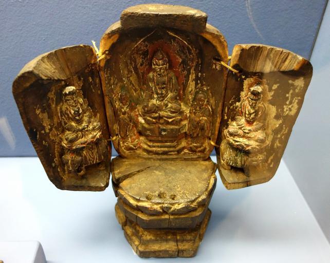 | Keywords: Traveling shrine, China, Ming or Qing dynasty, wood with traces of pigment - Fitchburg Art Museum - DSC08744.JPG en Exhibit in the Fitchburg Art Museum Fitchburg Massachusetts USA This artwork is old enough so that it is in the public domain Photography was permitted in the museum without restriction 2013-06-14 15 21 22 own Daderot cc-zero Art of China in the Fitchburg Art Museum Uploaded with UploadWizard Buddhist shrines | ||||