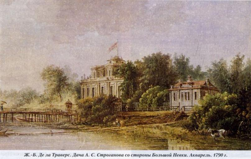 Keywords: Traversay Dacha Stroganova 1790a.jpg ru Дача А С Ст оганова со сто оны Большой евки Аква ель 1790 Source Ж Б де ла Т аве с 1790 Stroganova dacha PD-old-100
