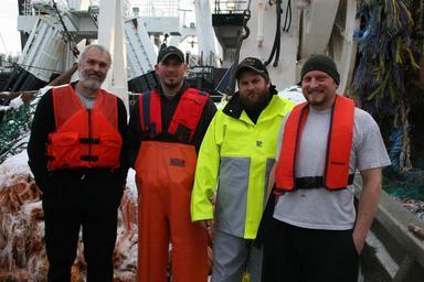 Keywords: Trawl fishermen personal flotation devices.jpg en Trawl fishermen from the F/V Sea Dawn show off the personal flotation devices they wore a part of a NIOSH evaluation study in 2009 2009-01-18 12 27 48 http //www flickr com/photos/niosh/8743425031/ National Institute for Occupational Safety and Health PD-USGov Uploaded with UploadWizard Fishermen Personal Protective Equipment Four men Men with beards Photographs of standing men Men looking at viewer |