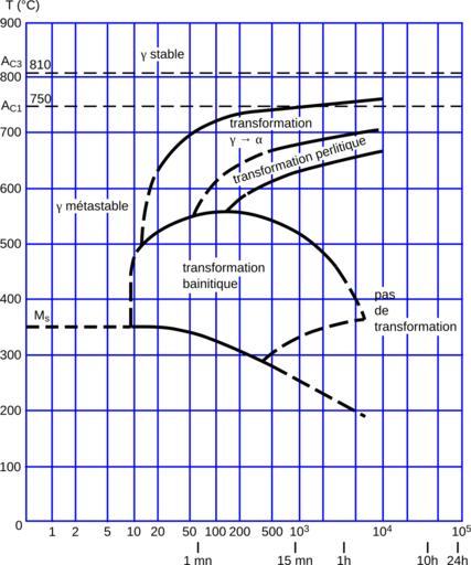 | Keywords: TRC 34CrMo4 fr.svg en Continuous cooling transformation diagram of EN 34CrMo4 steel SAE 4135 in french fr Diagramme TRC de l'acier 34 CrMo4 SAE 4135 en français own Cdang 2009-01-21 Created with Inkscape Continuous cooling transformation diagrams |