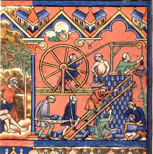 | Keywords: Treadmillcrane (modificat).jpg  ca Aquest és un exemple ricament decorat de la vida en una obra en construcció d'un castell fortalesa del segle XIII Un home caminant a la roda acciona la grua a manera de molí de sang A Guédelon Treigny França es pot veure una reconstrucció d'aquesta grua medieval 2013-04-11 17 04 49 http //commons wikimedia org/wiki/File Treadmillcrane jpg Marie Reed Guédelon Medieval 13th Century Construction Machines Uploaded with UploadWizard Tower of Babel in medieval miniature Construction of buildings in medieval miniature Men at work in art Medieval cranes Treadwheel cranes Late medieval way of life 12th-15th centuries |