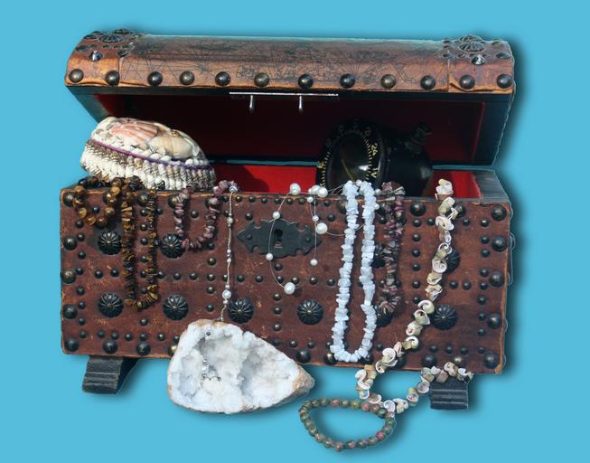 Keywords: treasure chest chest gems box open decoration jewellery chains isolated