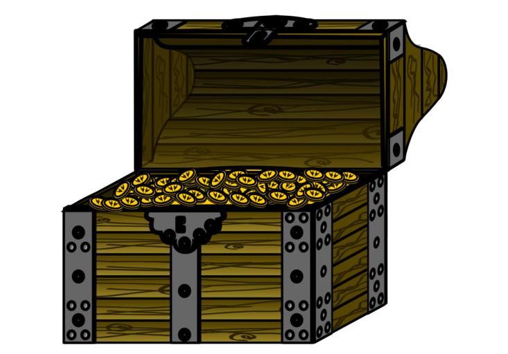 Keywords: treasure gold coins pirate chest box wealth money fortune shiny precious open wooden old