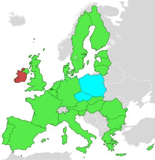| Keywords: Treaty of Lisbon ratification-2009-23-09.svg If you wish to alter the colours on this SVG map download http //www inkscape org/ Inkscape and edit the file using that program It's very easy SVGs look sharper than PNGs en The EU member states that have ratified or not ratified the Lisbon Treaty <br /> <span style background-color 56eb4a >Green </span> Ratified and deposited documents in Rome<br /> <span style background-color FFFF00 >Yellow </span> Ratified but no deposition of documents yet i e signed by president <br /> <span style background-color 00ffff >Light Blue </span> Approved by parliament<br /> <span style background-color 0085b8 >Teal Blue </span> Not ratified<br /> <Span style background-color c83737 >Red </span> Rejected Treaty_of_Lisbon_ratification svg 2009-09-23 12 09 UTC Treaty_of_Lisbon_ratification svg S Solberg J derivative work Lesihc <span class signature-talk >talk</span> Germany signed Lesihc Treaty_of_Lisbon_ratification svg </nowiki> 2008-07-17T09 20 07Z Nick84 454x450 307749 Bytes <nowiki>+UK deposition</nowiki> 2008-07-11T11 51 59Z Nick84 454x450 307749 Bytes <nowiki>Something went wrong on the previous up </nowiki> 2008-07-11T11 47 30Z Nick84 454x450 307749 Bytes <nowiki>+ Belgium</nowiki> 2008-07-09T22 05 56Z Nick84 454x450 307709 Bytes <nowiki>As said in http //www rte ie/news/2008/0523/eulisbon html German president is acting in the same way as the Polish one He signed the law but refused to actually sign the treaty even if for different reason Same situation </nowiki> 2008-07-08T13 15 35Z Nick84 454x450 307672 Bytes <nowiki>+ NL</nowiki> 2008-07-06T10 05 55Z Nick84 454x450 307633 Bytes <nowiki> </nowiki> 2008-07-05T11 17 47Z Ssolbergj 454x450 307631 Bytes <nowiki> </nowiki> 2008-07-05T11 13 58Z Ssolbergj 454x450 307631 Bytes <nowiki> </nowiki> 2008-07-03T18 55 14Z Jla 454x450 309046 Bytes <nowiki>Cyprus ratifies</nowiki> 2008-06-30T21 35 15Z Ssolbergj 454x450 534731 Bytes <nowiki> </nowiki> Uploaded with derivativeFX Treaty of Lisbon |